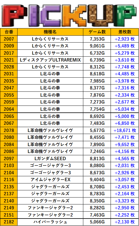 東京PIA上野店 過去の取材結果はこちら 取材日 2025年5月1日(木) 並びの人数 抽選47名 / 一般27名 内容 スロミュー七福神 応援ホール ミスタージャグラー 沖ドキ!BLACK Lモンスターハンターライズ マイジャグラーV L東京喰種 その他Pickup箇所 過去の取材結果はこちら