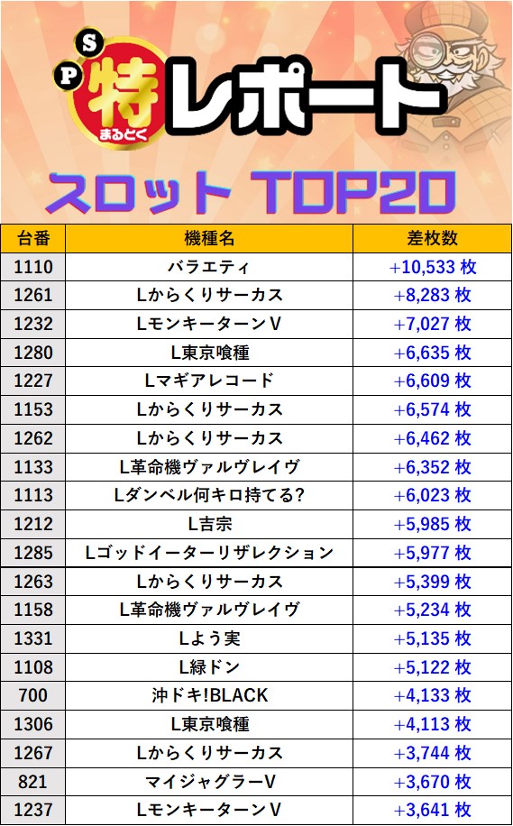 スロミューマル特レポートTOP20