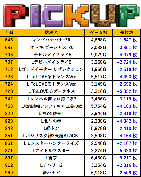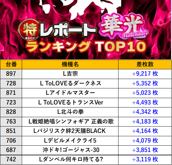岐阜ラッキープラザ900関店 過去の取材結果はこちら 取材日 2025年6月8日(日) 並びの人数 抽選5名 / 一般26名 内容 応援ホール マル特レポート華光 スロミューマル特レポート華光 ランキングTOP10 Pickup箇所 その他Pickup箇所 過去の取材結果はこちら