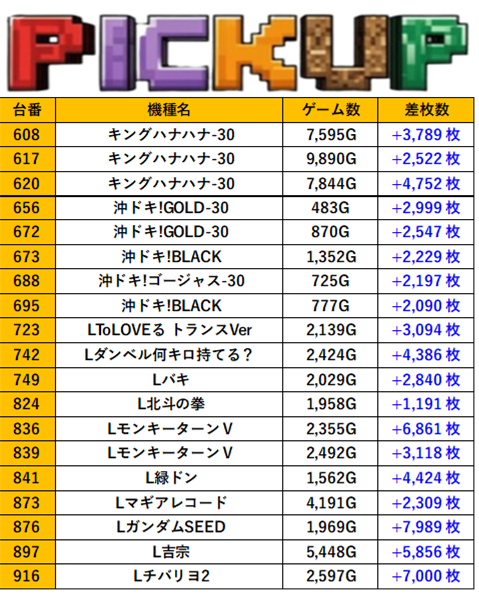 岐阜ラッキープラザ900関店 過去の取材結果はこちら 取材日 2025年6月14日(土) 並びの人数 抽選8名 / 一般22名 内容 応援ホール マル特レポートスマスロ スロミューマル特レポートスマスロ ランキングTOP10 Pickup箇所① Pickup箇所② Pickup箇所③ Pickup箇所④ その他Pickup箇所 過去の取材結果はこちら