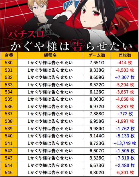 神奈川PIA川崎ダイス店 過去の取材結果はこちら 取材日 2025年7月1日(火) 並びの人数 抽選19名 / 一般101名 内容 スロミュー七福神 応援ホール マル特レポートスマスロ マル特レポート華光 Lマギアレコード Lゴッドイーターリザレクション Lかぐや様は告らせたい 沖ドキ!GOLD-30 Pickup箇所 その他Pickup箇所 過去の取材結果はこちら