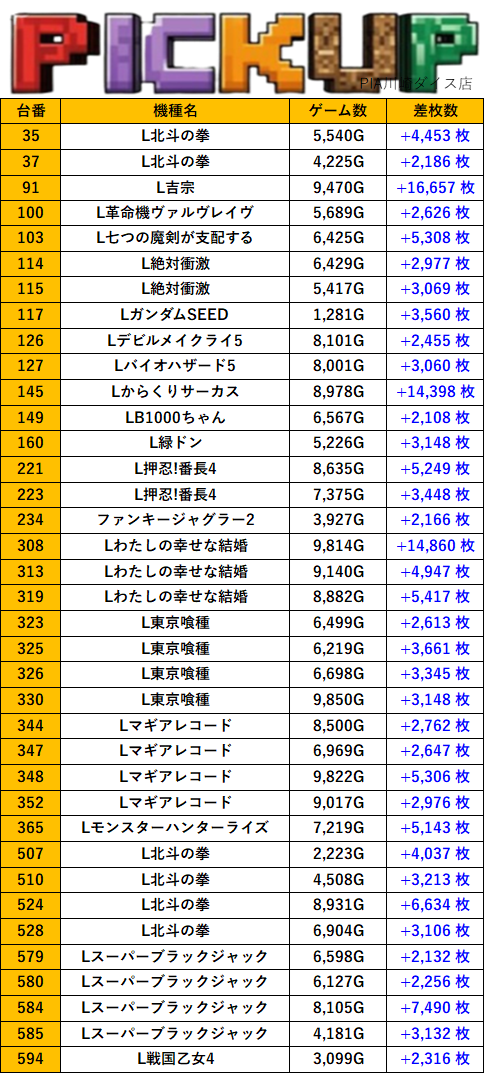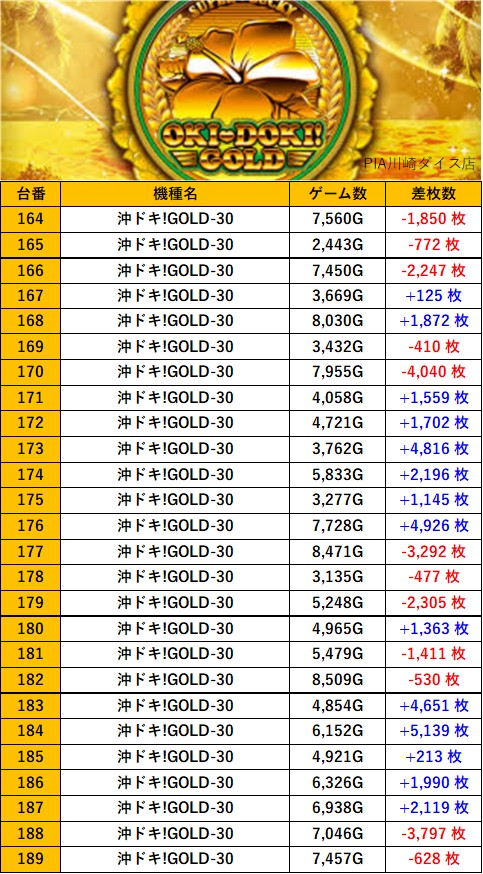 神奈川PIA川崎ダイス店 過去の取材結果はこちら 取材日 2025年7月14日(月) 並びの人数 抽選35名 / 一般109名 内容 スロミュー七福神 応援ホール マル特レポートスマスロ マル特レポート華光 LToLOVEる トランスver 沖ドキ!GOLD-30 Lかぐや様は告らせたい Pickup箇所 その他Pickup箇所 過去の取材結果はこちら
