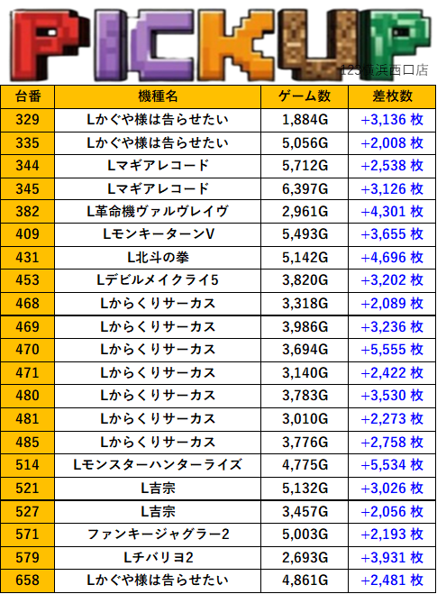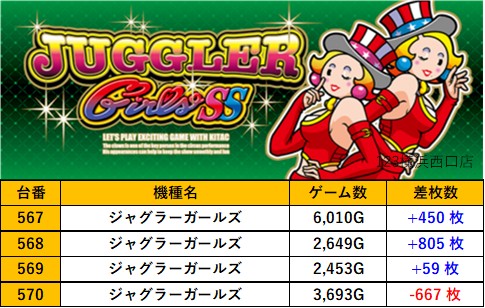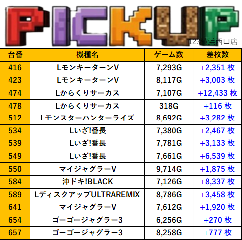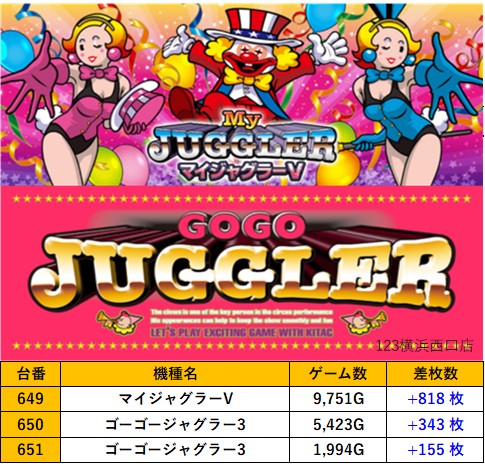 神奈川123横浜西口店 過去の取材結果はこちら 取材日 2025年7月28日(月) 並びの人数 抽選32名 / 一般20名 内容 スロミュー七福神 応援ホール ジャグラーガールズ LToLOVEる トランスver Lスーパーブラックジャック Lレヴュースタァライト Pickup箇所① Pickup箇所② Pickup箇所③ Pickup箇所④ Pickup箇所⑤ その他Pickup箇所① その他Pickup箇所② 過去の取材結果はこちら
