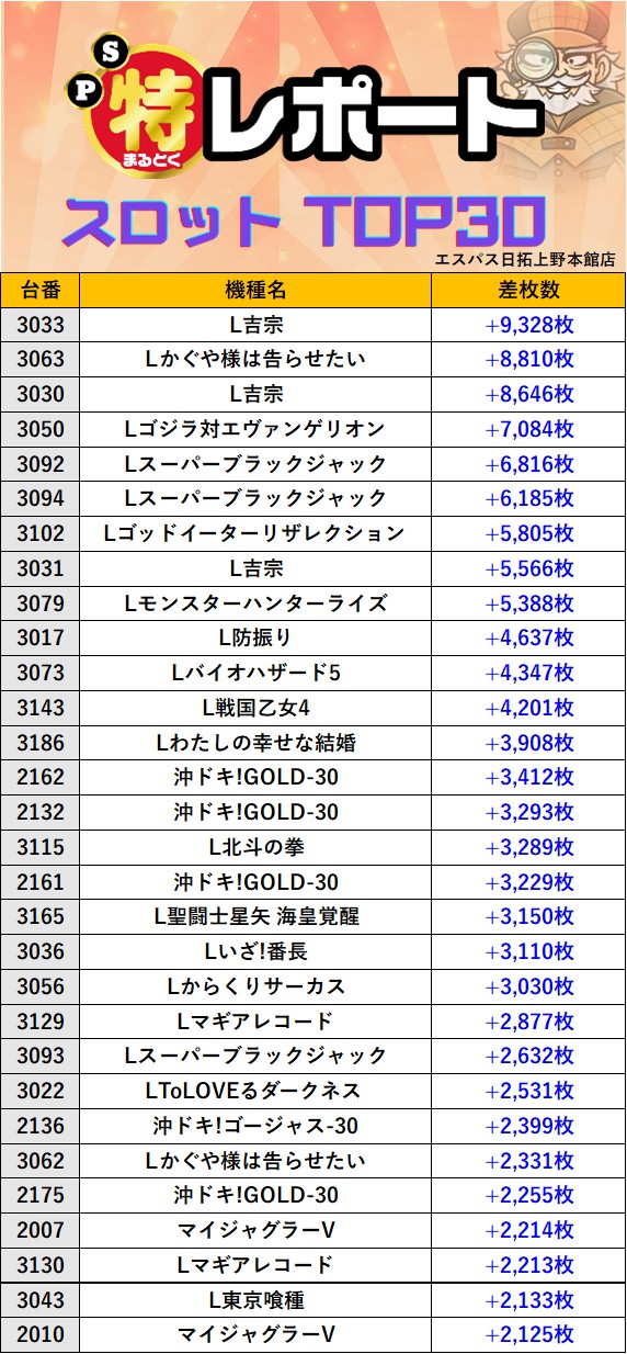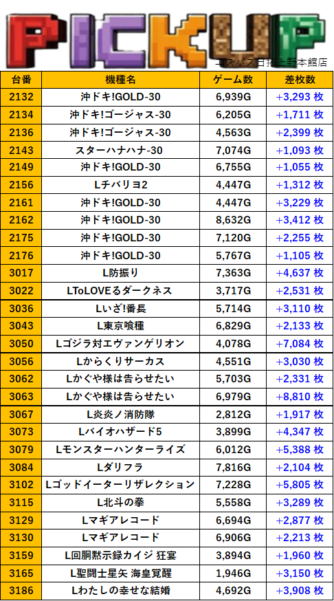 東京エスパス日拓上野本館店 過去の取材結果はこちら 取材日 2025年8月16日(土) 並びの人数 抽選238名 / 一般81名 内容 応援ホール マル特レポート スロミューマル特レポートTOP30 L吉宗 Pickup箇所① Pickup箇所② Pickup箇所③ その他Pickup箇所 過去の取材結果はこちら
