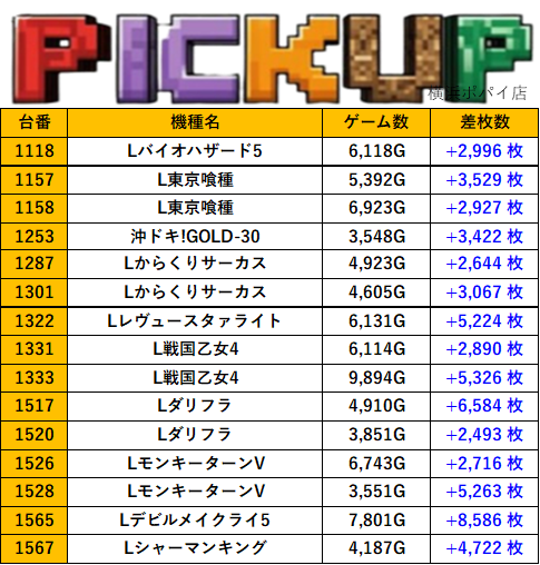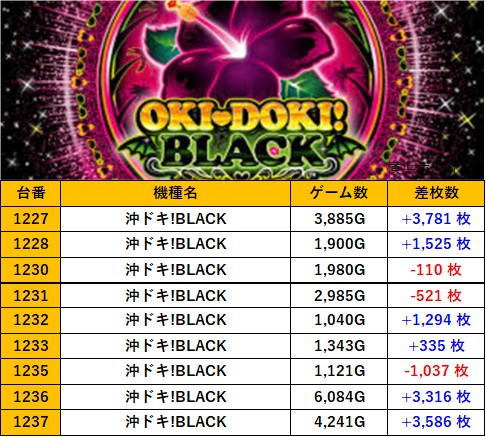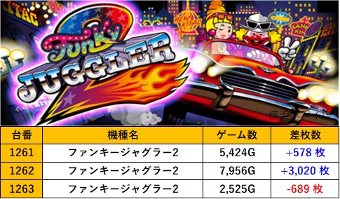 神奈川横浜ポパイ店 過去の取材結果はこちら 取材日 2025年8月30日(土) 並びの人数 抽選70名 / 一般50名 内容 スロミュー七福神 応援ホール Lスーパーブラックジャック L北斗の拳 沖ドキ!BLACK スターハナハナ-30 ファンキージャグラー2 Lモンスターハンターライズ Lマギアレコード L吉宗 Pickup箇所 その他Pickup箇所 過去の取材結果はこちら