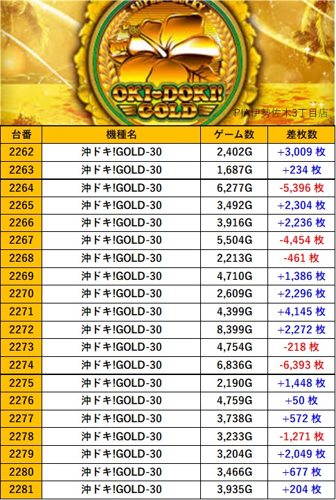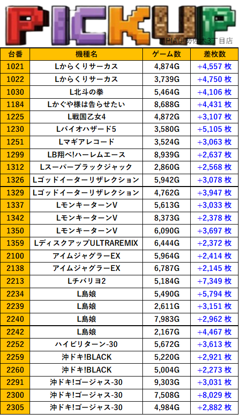 店舗詳細 取材日 2025年8月24日(日) 実施店舗 PIA伊勢佐木3丁目店 並びの人数 抽選51名 / 一般116名 内容 ※他スロミュー取材3件 沖ドキ!GOLD-30 マイジャグラーV L東京喰種 その他Pickup箇所 前のページに戻る 過去の結果はこちら