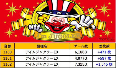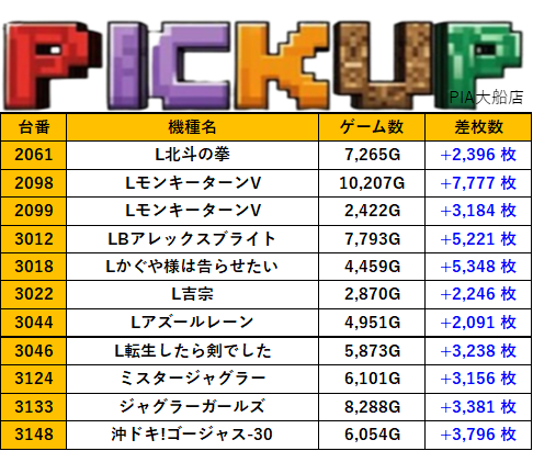 店舗詳細 取材日 2025年8月19日(火) 実施店舗 PIA大船店 並びの人数 抽選120名 / 一般22名 内容 ※他スロミュー取材3件 L東京喰種 L革命機ヴァルヴレイヴ Lいざ!番長 Pickup箇所① Pickup箇所② Pickup箇所③ Pickup箇所④ Pickup箇所⑤ Pickup箇所⑥ Pickup箇所⑦ Pickup箇所⑧ その他Pickup箇所 前のページに戻る 過去の結果はこちら