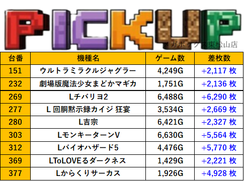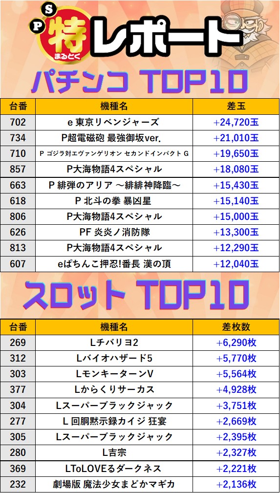 埼玉メガボックス東松山店 過去の取材結果はこちら 取材日 2025年8月24日(日) 並びの人数 抽選16名 / 一般20名 内容 応援ホール マル特レポート スロミューマル特レポートTOP10 Lスーパーブラックジャック Pickup箇所① Pickup箇所② その他Pickup箇所 過去の取材結果はこちら