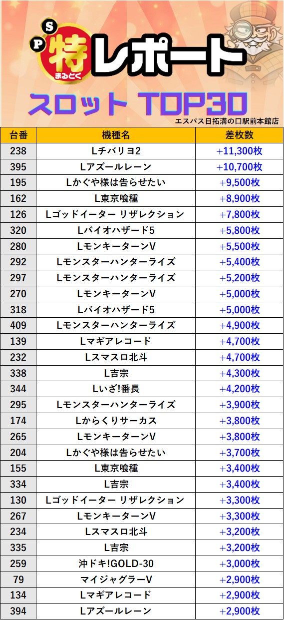 スロミューマル特レポートTOP30