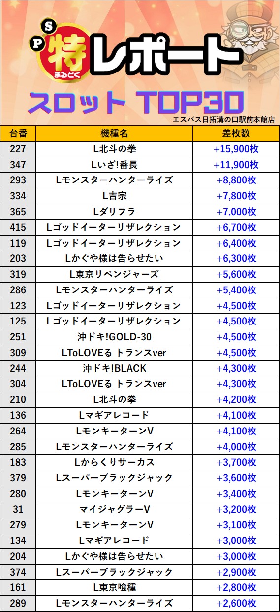 スロミューマル特レポートTOP30