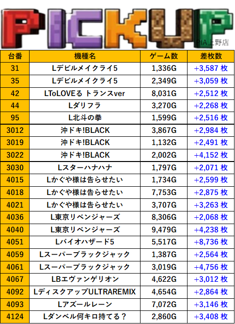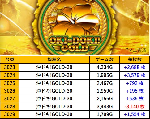 東京PIA上野店 過去の取材結果はこちら 取材日 2025年9月24日(水) 並びの人数 抽選17名 / 一般29名 内容 スロミュー七福神 応援ホール 沖ドキ!GOLD-30 L東京喰種 LモンキーターンV L吉宗 Lマギアレコード その他Pickup箇所 過去の取材結果はこちら