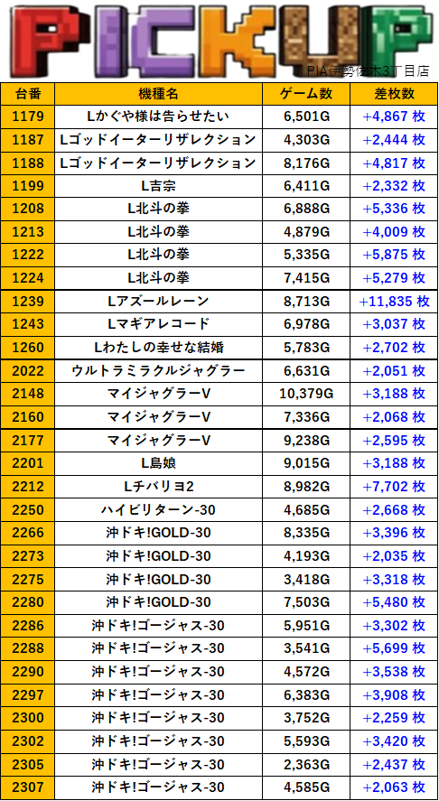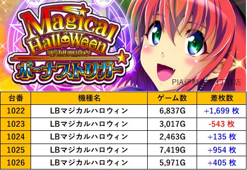 店舗詳細 取材日 2025年9月28日(日) 実施店舗 PIA伊勢佐木3丁目店 並びの人数 抽選32名 / 一般75名 内容 ※他スロミュー取材1件 LBマジカルハロウィン Lスーパーブラックジャック L東京リベンジャーズ L東京喰種 その他Pickup箇所 前のページに戻る 過去の結果はこちら