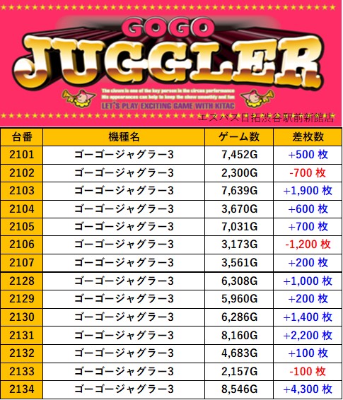 店舗詳細 取材日 2025年10月1日(水) 実施店舗 エスパス日拓渋谷駅前新館店 並びの人数 抽選20名 / 一般46名 内容 ※他スロミュー取材1件 L東京喰種 Lシャーマンキング アイムジャグラーEX ゴーゴージャグラー3 前のページに戻る 過去の結果はこちら