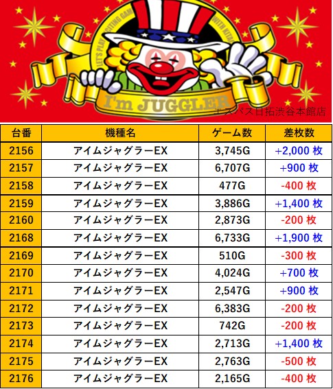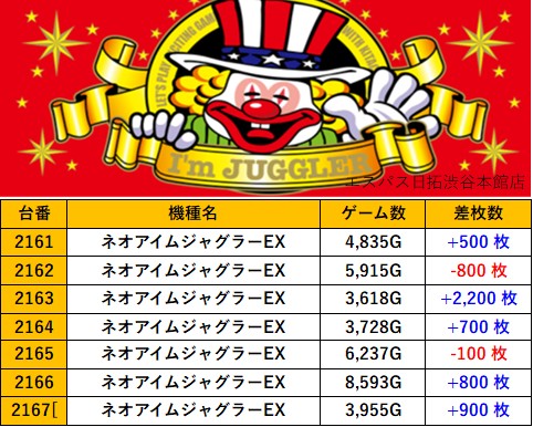 東京エスパス日拓渋谷本館店 過去の取材結果はこちら 取材日 2025年10月1日(水) 並びの人数 抽選114名 / 一般13名 内容 応援ホール 極パス(エスパス一斉取材) L東京喰種 ネオアイムジャグラーEX アイムジャグラーEX 過去の取材結果はこちら