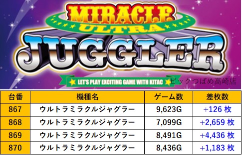 群馬ビックつばめ高崎店 過去の取材結果はこちら 取材日 2025年9月23日(火) 並びの人数 抽選380名 / 一般120名 内容 応援ホール リアル校長 L咲 頂上決戦 ウルトラミラクルジャグラー ミスタージャグラー L吉宗 Lからくりサーカス その他Pickup箇所 過去の取材結果はこちら