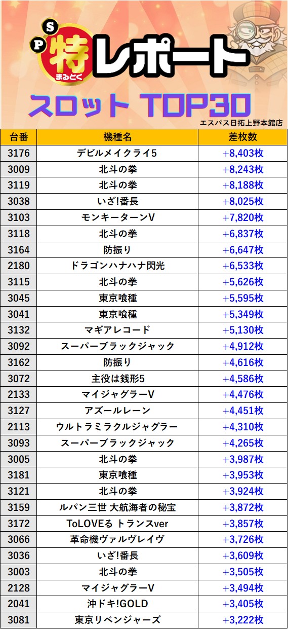 スロミューマル特レポートTOP30