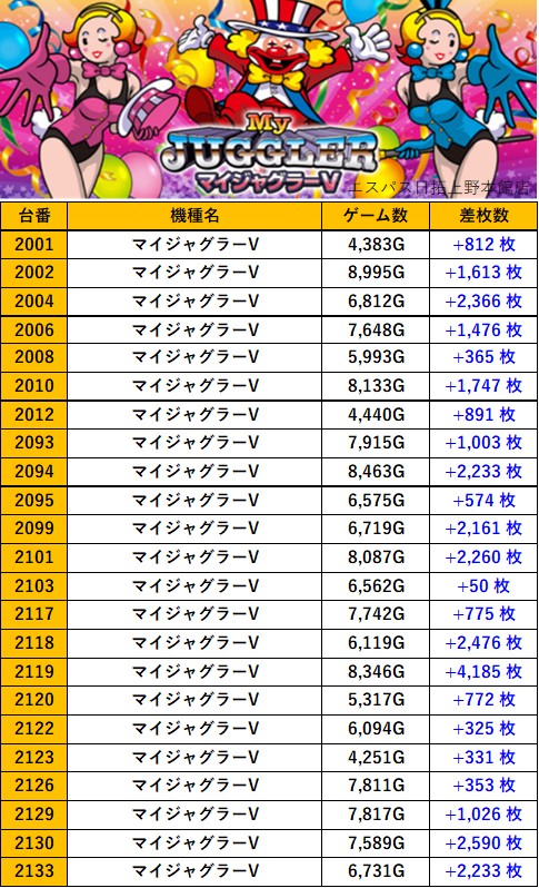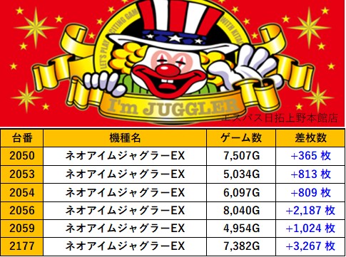 東京エスパス日拓上野本館店 過去の取材結果はこちら 取材日 2025年10月14日(火) 並びの人数 抽選268名 / 一般21名 内容 スロミュー七福神 応援ホール L新鬼武者3 L東京喰種 ウルトラミラクルジャグラー Pickup箇所① Pickup箇所② Pickup箇所③ その他Pickup箇所 過去の取材結果はこちら