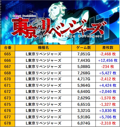 神奈川アビバANNEX & SQUARE店 過去の取材結果はこちら 取材日 2025年10月4日(土) 並びの人数 抽選40名 / 一般37名 内容 スロミュー七福神 応援ホール LモンキーターンV LBアレックスブライト LBクレアの秘宝伝 L東京リベンジャーズ 過去の取材結果はこちら