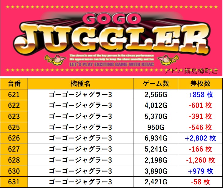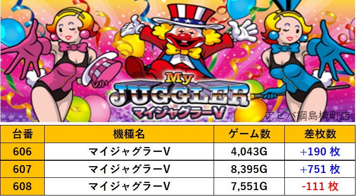 神奈川アビバ綱島樽町店 過去の取材結果はこちら 取材日 2025年10月26日(日) 並びの人数 抽選8名 / 一般21名 内容 スロミュー七福神 応援ホール ネオアイムジャグラーEX 東京喰種 北斗の拳 ゴーゴージャグラー3 Pickup箇所 その他Pickup箇所 過去の取材結果はこちら