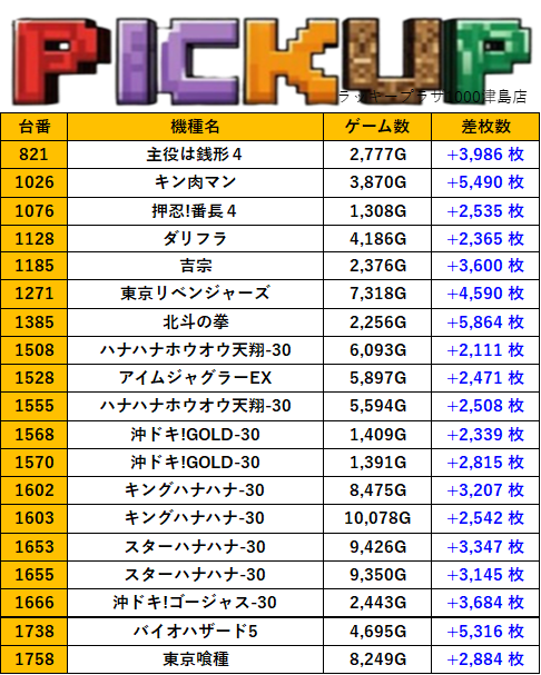 愛知ラッキープラザ1000津島店 過去の取材結果はこちら 取材日 2025年10月18日(土) 並びの人数 抽選22名 / 一般16名 内容 応援ホール マル特レポートスマスロ スロミューマル特レポートスマスロ ランキングTOP10 Pickup箇所① Pickup箇所② Pickup箇所③ Pickup箇所④ Pickup箇所⑤ Pickup箇所⑥ その他Pickup箇所 過去の取材結果はこちら