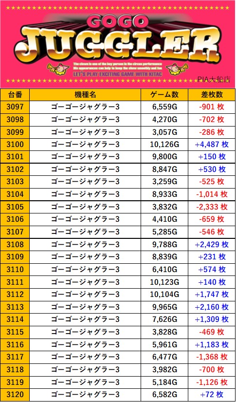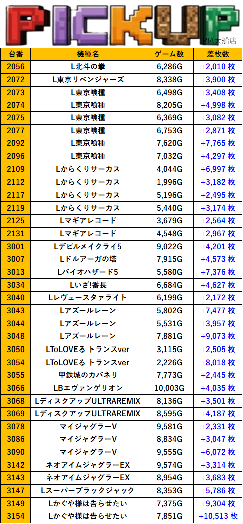 店舗詳細 取材日 2025年10月5日(日) 実施店舗 PIA大船店 並びの人数 抽選146名 / 一般49名 内容 ※他スロミュー取材1件 LモンキーターンV ゴーゴージャグラー3 L革命機ヴァルヴレイヴ その他Pickup箇所 前のページに戻る 過去の結果はこちら