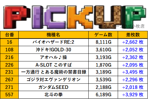 愛知ラッキープラザ小牧店 過去の取材結果はこちら 取材日 2025年11月1日(土) 並びの人数 一般14名 内容 マル特レポートスマスロ 応援ホール スロミューマル特レポートスマスロ ランキングTOP10 Pickup箇所① Pickup箇所② Pickup箇所③ その他Pickup箇所 過去の取材結果はこちら