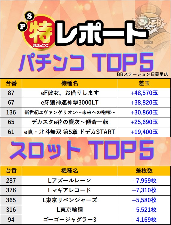 店舗詳細 取材日 2025年10月4日(土) 実施店舗 BBステーション日暮里店 並びの人数 抽選30名 / 一般8名 内容 ※他スロミュー取材1件 スロミューマル特レポートTOP5 Lマギアレコード Pickup箇所① Pickup箇所② 前のページに戻る 過去の結果はこちら