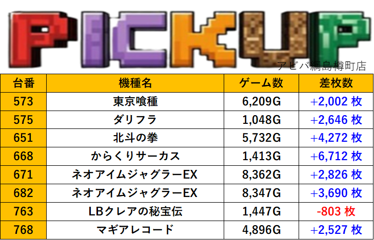 神奈川アビバ綱島樽町店 過去の取材結果はこちら 取材日 2025年11月22日(土) 並びの人数 抽選7名 / 一般20名 内容 スロミュー七福神 応援ホール Pickup箇所① Pickup箇所② Pickup箇所③ Pickup箇所④ その他Pickup箇所 過去の取材結果はこちら