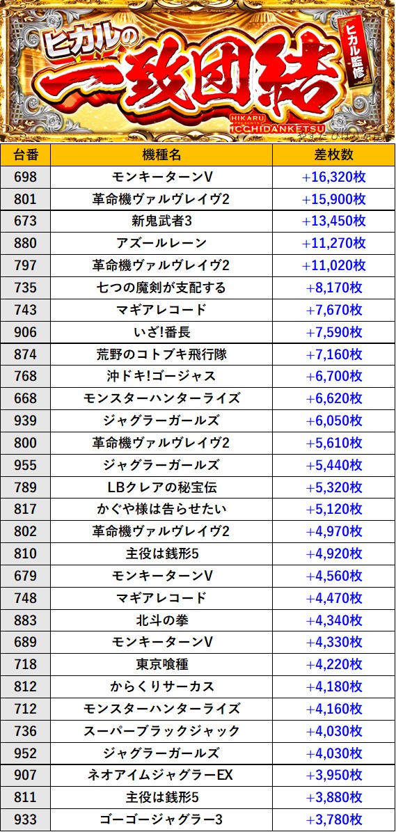 東京やすだ ひばりヶ丘店 過去の取材結果はこちら 取材日 2025年11月11日(火) 並びの人数 抽選183名 / 一般110名 内容 🌓ヒカルの一致団結🌓 『ヒカルの一致団結』ランキング ※弊社独自調べによるデータになります。 過去の取材結果はこちら