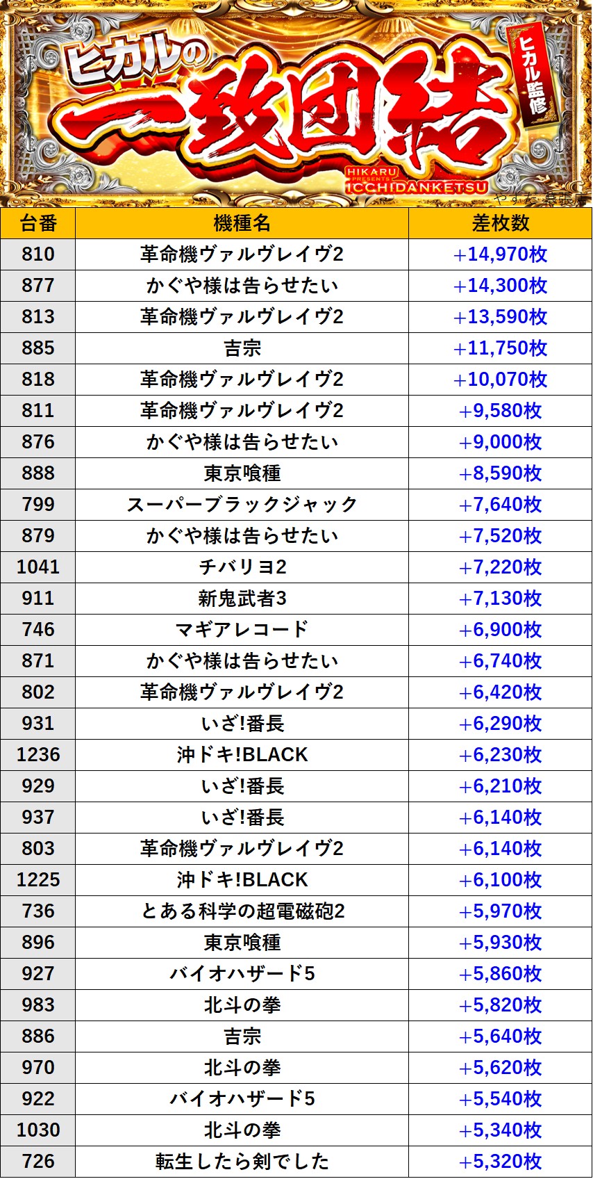 千葉やすだ 幕張店 過去の取材結果はこちら 取材日 2025年11月11日(火) 並びの人数 抽選428名 / 一般142名 内容 🌓ヒカルの一致団結🌓 『ヒカルの一致団結』ランキング ※弊社独自調べによるデータになります。 過去の取材結果はこちら