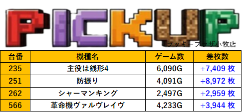 愛知ラッキープラザ小牧店 過去の取材結果はこちら 取材日 2025年10月25日(土) 並びの人数 抽選8名 / 一般54名 内容 マル特レポートスマスロ 応援ホール スロミューマル特レポートスマスロ ランキングTOP10 Pickup箇所① Pickup箇所② Pickup箇所③ その他Pickup箇所① その他Pickup箇所② 過去の取材結果はこちら