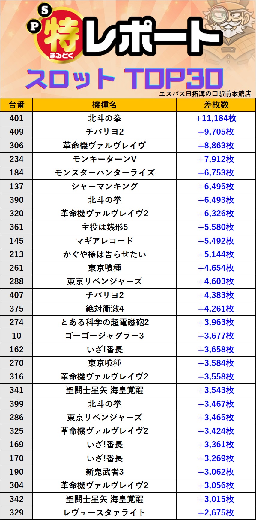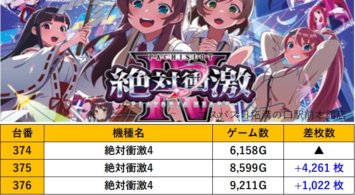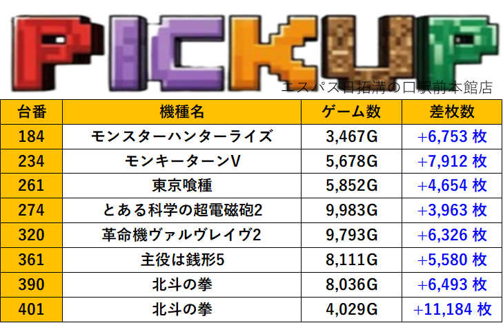 神奈川エスパス日拓溝の口駅前本館店 過去の取材結果はこちら 取材日 2025年11月20日(木) 並びの人数 抽選40名 / 一般14名 内容 応援ホール マル特レポート スロミューマル特レポートTOP30 Pickup箇所① Pickup箇所② Pickup箇所③ Pickup箇所④ Pickup箇所⑤ Pickup箇所⑥ Pickup箇所⑦ Pickup箇所⑧ Pickup箇所⑨ その他Pickup箇所 過去の取材結果はこちら