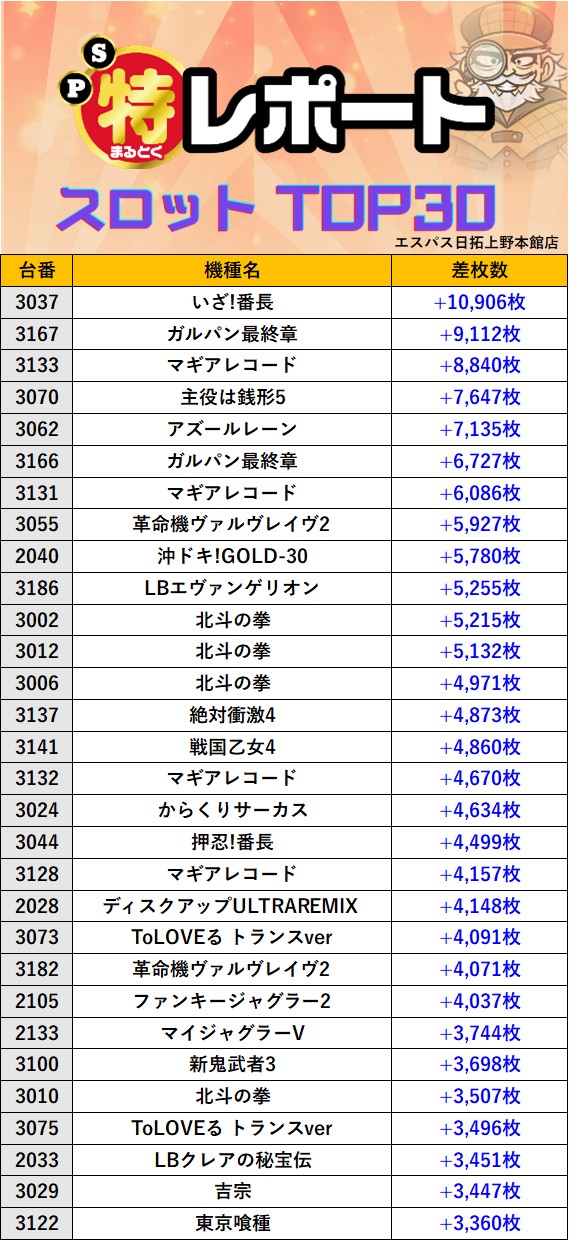 スロミューマル特レポートTOP30