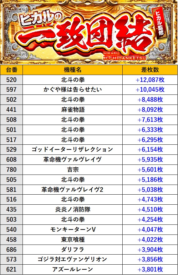 鳥取ジャンボマックス888鳥取店 過去の取材結果はこちら 取材日 2025年11月15日(土) 並びの人数 抽選202名 / 一般240名 内容 🌓ヒカルの一致団結🌓 『ヒカルの一致団結』ランキング 過去の取材結果はこちら