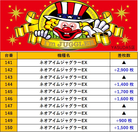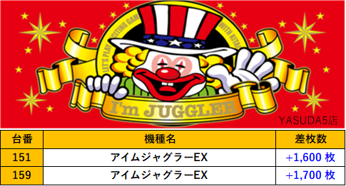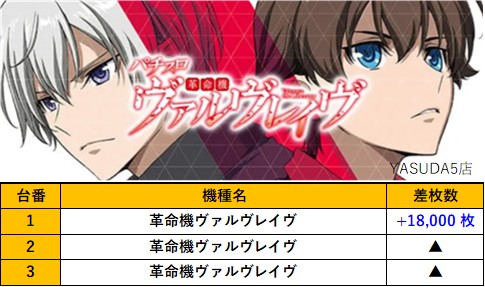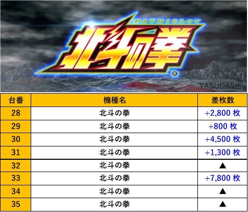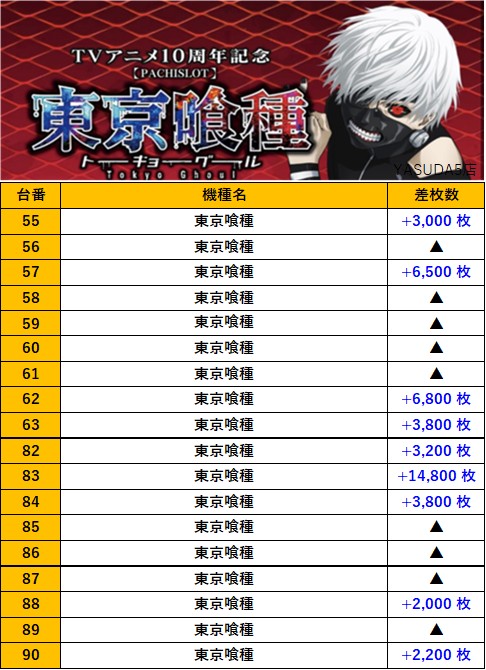 東京YASUDA5店 過去の取材結果はこちら 取材日 2025年11月1日(土) 並びの人数 抽選54名 / 一般22名 内容 スロミュー七福神 応援ホール 北斗の拳 東京喰種 革命機ヴァルヴレイヴ Pickup箇所① Pickup箇所② Pickup箇所③ 過去の取材結果はこちら