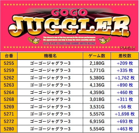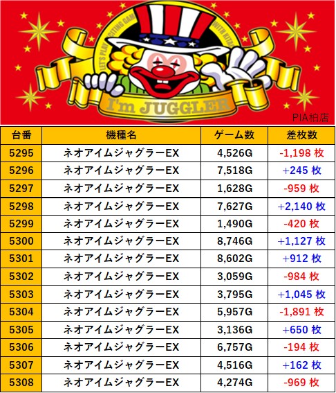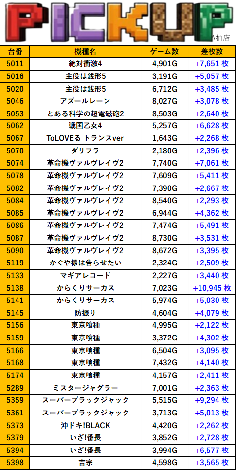 千葉PIA柏店 過去の取材結果はこちら 取材日 2025年11月17日(月) 並びの人数 抽選27名 / 一般66名 内容 スロミュー七福神 応援ホール Pickup箇所① Pickup箇所② Pickup箇所③ Pickup箇所④ Pickup箇所⑤ その他Pickup箇所 過去の取材結果はこちら