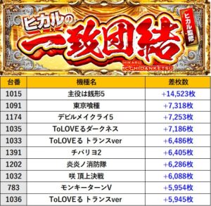 福岡Super D’station39飯塚店 過去の取材結果はこちら 取材日 2025年12月13日(土) 並びの人数 抽選228名 / 一般88名 内容 🌓ヒカルの一致団結🌓 『ヒカルの一致団結』ランキング 過去の取材結果はこちら