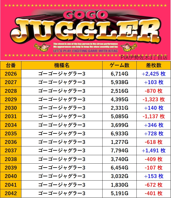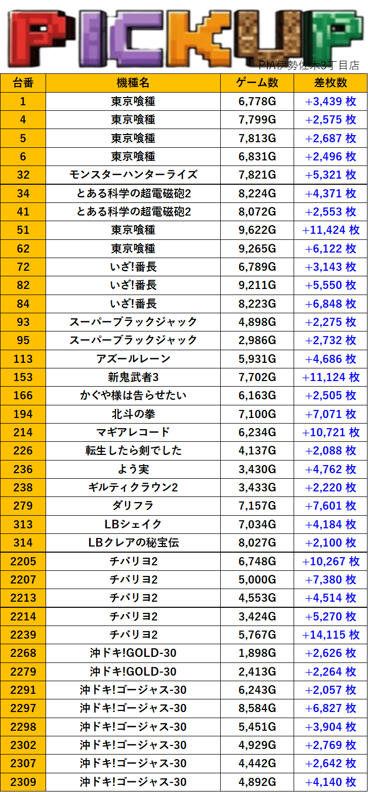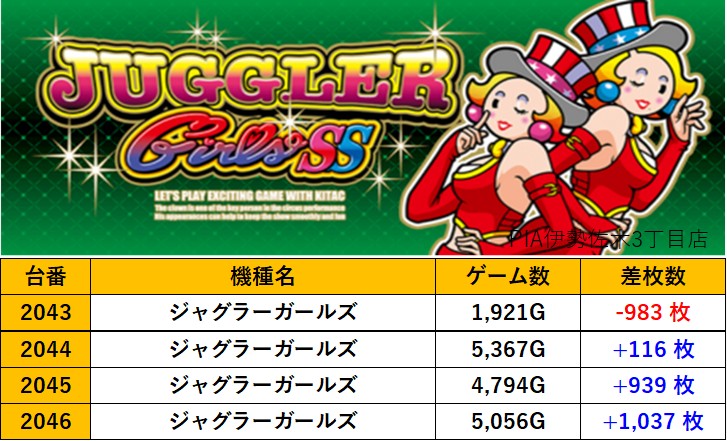 神奈川PIA伊勢佐木3丁目店 過去の取材結果はこちら 取材日 2025年11月15日(土) 並びの人数 抽選62名 / 一般211名 内容 スロミュー七福神 応援ホール Pickup箇所① Pickup箇所② Pickup箇所③ Pickup箇所④ Pickup箇所⑤ Pickup箇所⑥ Pickup箇所⑦ Pickup箇所⑧ その他Pickup箇所 過去の取材結果はこちら