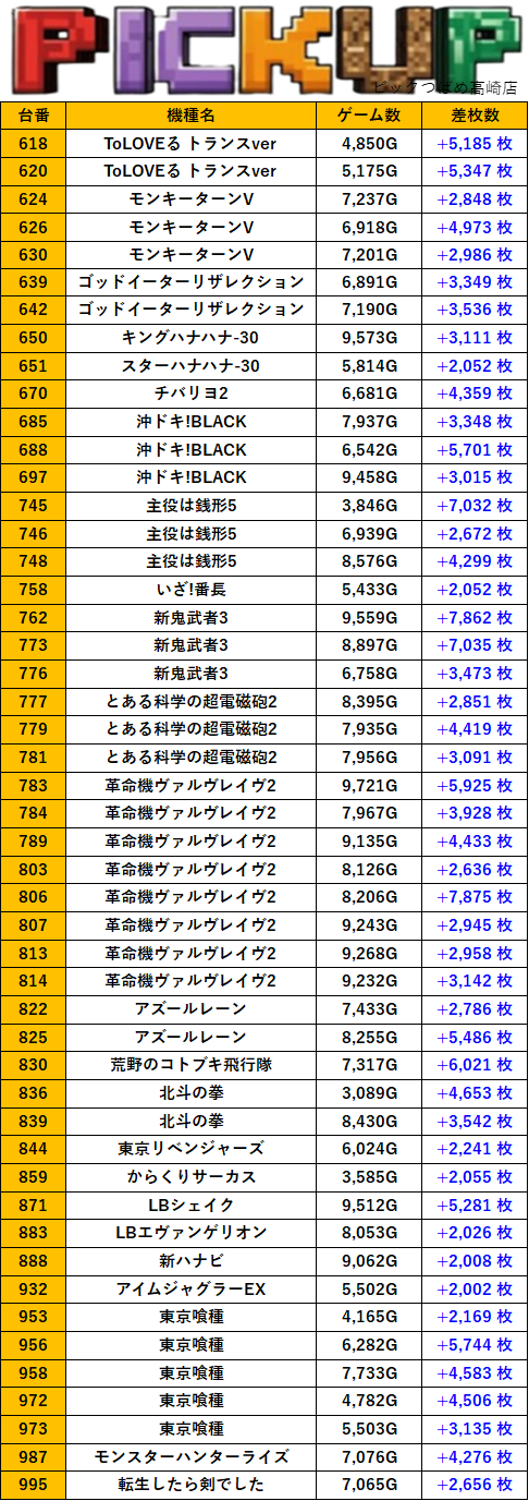 群馬ビックつばめ高崎店 過去の取材結果はこちら 取材日 2025年11月15日(土) 並びの人数 抽選238名 / 一般72名 内容 リアル校長 Pickup箇所① Pickup箇所② Pickup箇所③ Pickup箇所④ その他Pickup箇所 過去の取材結果はこちら