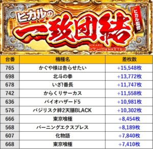 島根ジャンボマックス777出雲店 過去の取材結果はこちら 取材日 2025年12月20日(土) 並びの人数 抽選142名 / 一般60名 内容 🌓ヒカルの一致団結🌓 『ヒカルの一致団結』ランキング 過去の取材結果はこちら