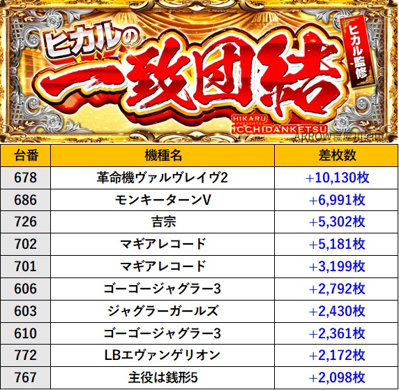 大阪ARROW寝屋川池田店 過去の取材結果はこちら 取材日 2025年12月1日(月) 並びの人数 抽選17名 / 一般16名 内容 🌓ヒカルの一致団結🌓 『ヒカルの一致団結』ランキング 過去の取材結果はこちら