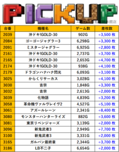 東京エスパス日拓上野本館店 過去の取材結果はこちら 取材日 2025年12月22日(月) 並びの人数 抽選76名 / 一般21名 内容 応援ホール マル特レポート スロミューマル特レポートTOP30 Pickup箇所① Pickup箇所② Pickup箇所③ Pickup箇所④ Pickup箇所⑤ Pickup箇所⑥ その他Pickup箇所① その他Pickup箇所② 過去の取材結果はこちら