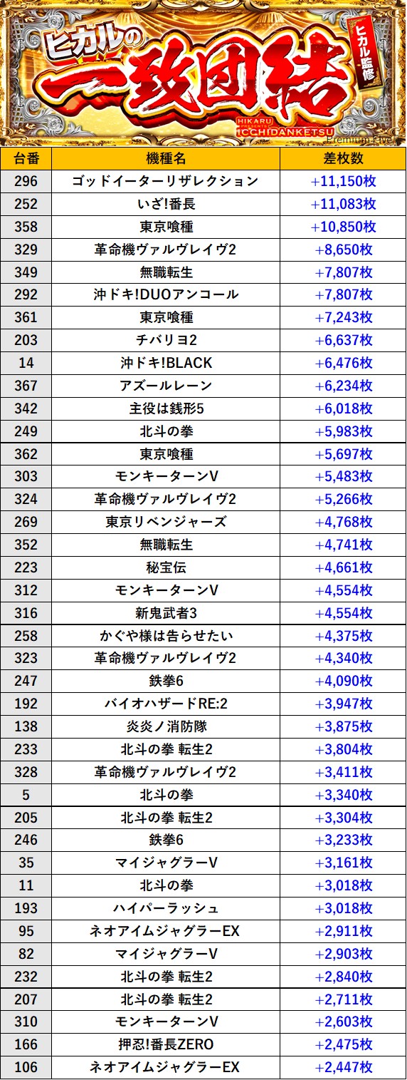 奈良Premium Five店 過去の取材結果はこちら 取材日 2026年1月11日(日) 並びの人数 抽選113名 / 一般33名 内容 🌓ヒカルの一致団結🌓 『ヒカルの一致団結』ランキング 過去の取材結果はこちら
