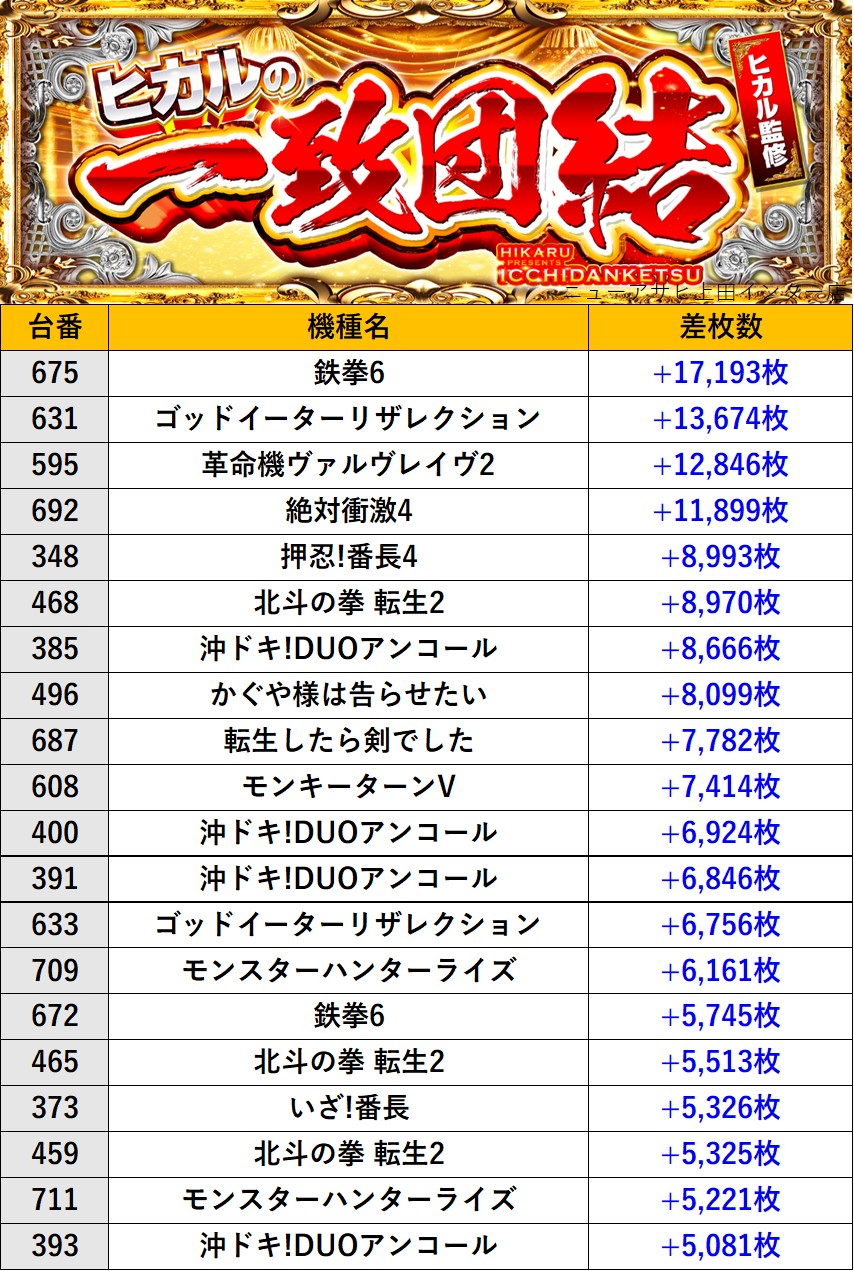 長野ニューアサヒ上田インター店 過去の取材結果はこちら 取材日 2026年1月11日(日) 並びの人数 抽選248名 / 一般47名 内容 🌓ヒカルの一致団結🌓 『ヒカルの一致団結』ランキング 過去の取材結果はこちら