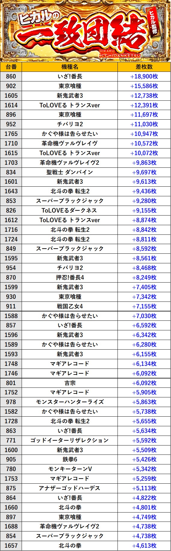 東京BIGディッパー新橋1号店 過去の取材結果はこちら 取材日 2026年1月18日(日) 並びの人数 抽選542名 / 一般90名 内容 🌓ヒカルの一致団結🌓 『ヒカルの一致団結』ランキング 過去の取材結果はこちら