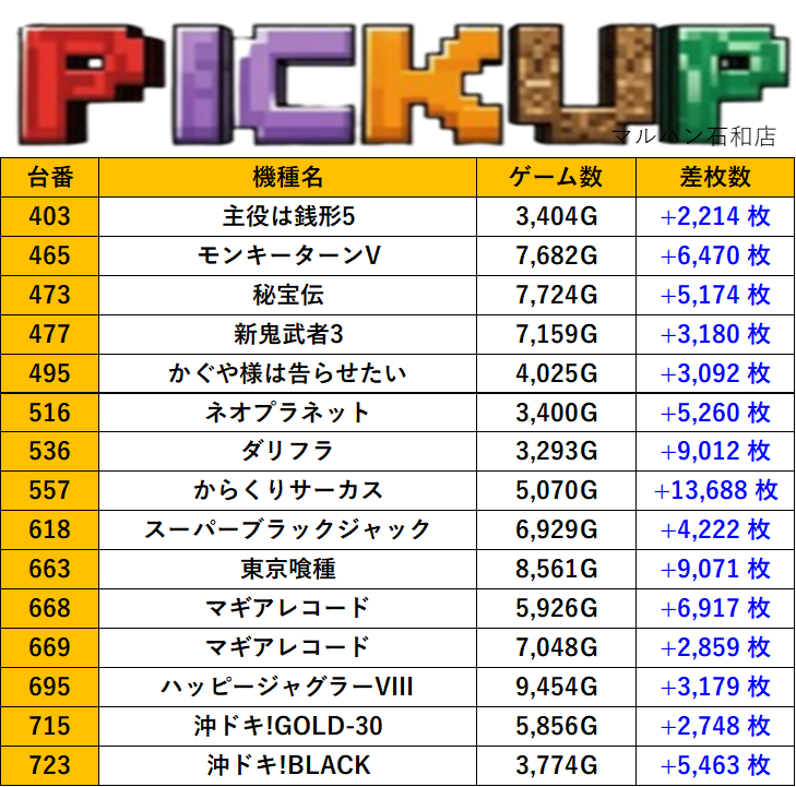 山梨マルハン石和店 過去の取材結果はこちら 取材日 2026年1月3日(土) 並びの人数 抽選91名 / 一般65名 内容 マル特レポート スロミューマル特レポートTOP30 Pickup箇所① Pickup箇所② Pickup箇所③ Pickup箇所④ Pickup箇所⑤ その他Pickup箇所 過去の取材結果はこちら