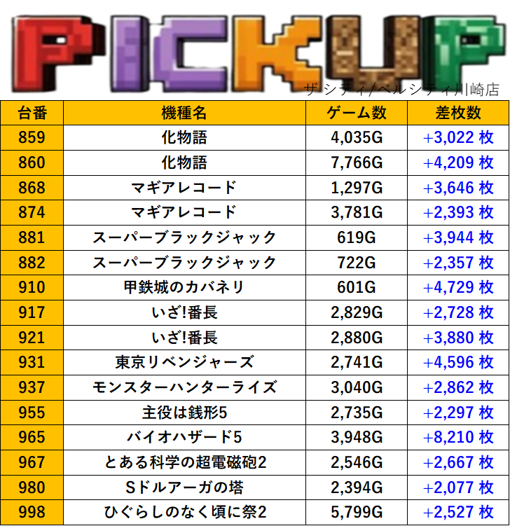 神奈川ザ シティ/ベルシティ川崎店 過去の取材結果はこちら 取材日 2026年1月12日(月) 並びの人数 抽選26名 / 一般8名 内容 スロミュー七福神 Pickup箇所① Pickup箇所② Pickup箇所③ Pickup箇所④ その他Pickup箇所 過去の取材結果はこちら
