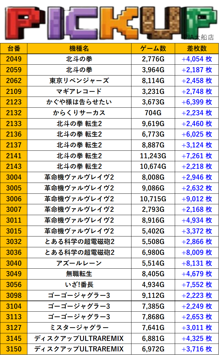 神奈川PIA大船店 過去の取材結果はこちら 取材日 2026年1月16日(金) 並びの人数 抽選57名 / 一般34名 内容 スロミュー七福神 Pickup箇所① Pickup箇所② Pickup箇所③ Pickup箇所④ Pickup箇所⑤ Pickup箇所⑥ その他Pickup箇所 過去の取材結果はこちら