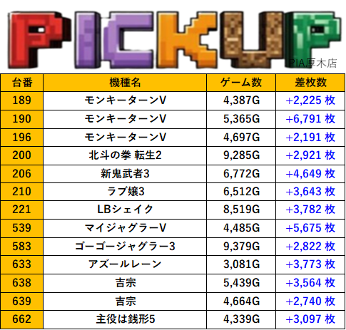 神奈川PIA厚木店 過去の取材結果はこちら 取材日 2026年1月27日(火) 並びの人数 抽選7名 / 一般43名 内容 スロミュー七福神 Pickup箇所① Pickup箇所② Pickup箇所③ その他Pickup箇所 過去の取材結果はこちら