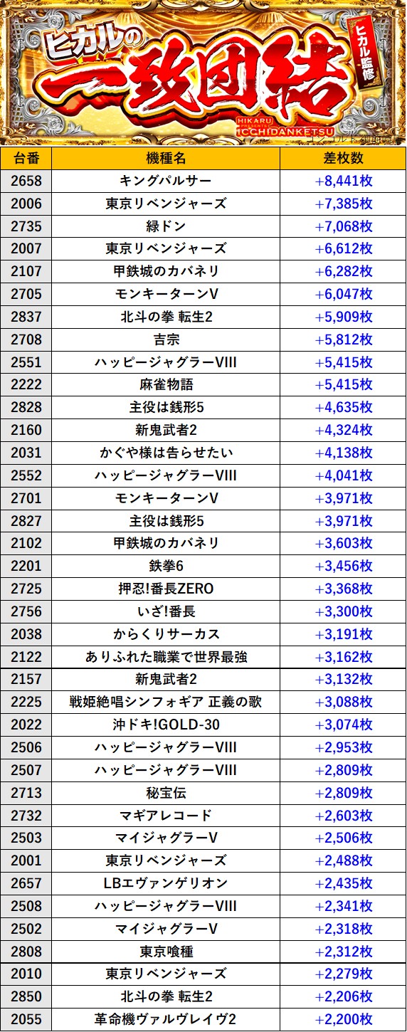 静岡コンコルド 御前崎店 過去の取材結果はこちら 取材日 2026年1月17日(土) 並びの人数 抽選129名 / 一般78名 内容 🌓ヒカルの一致団結🌓 『ヒカルの一致団結』ランキング 過去の取材結果はこちら
